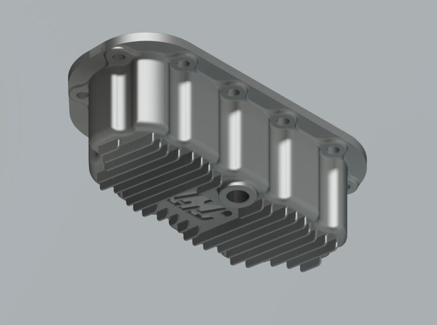 Coppa olio cambio maggiorata ricavata da un blocco pieno di Ergal mediante CNC.